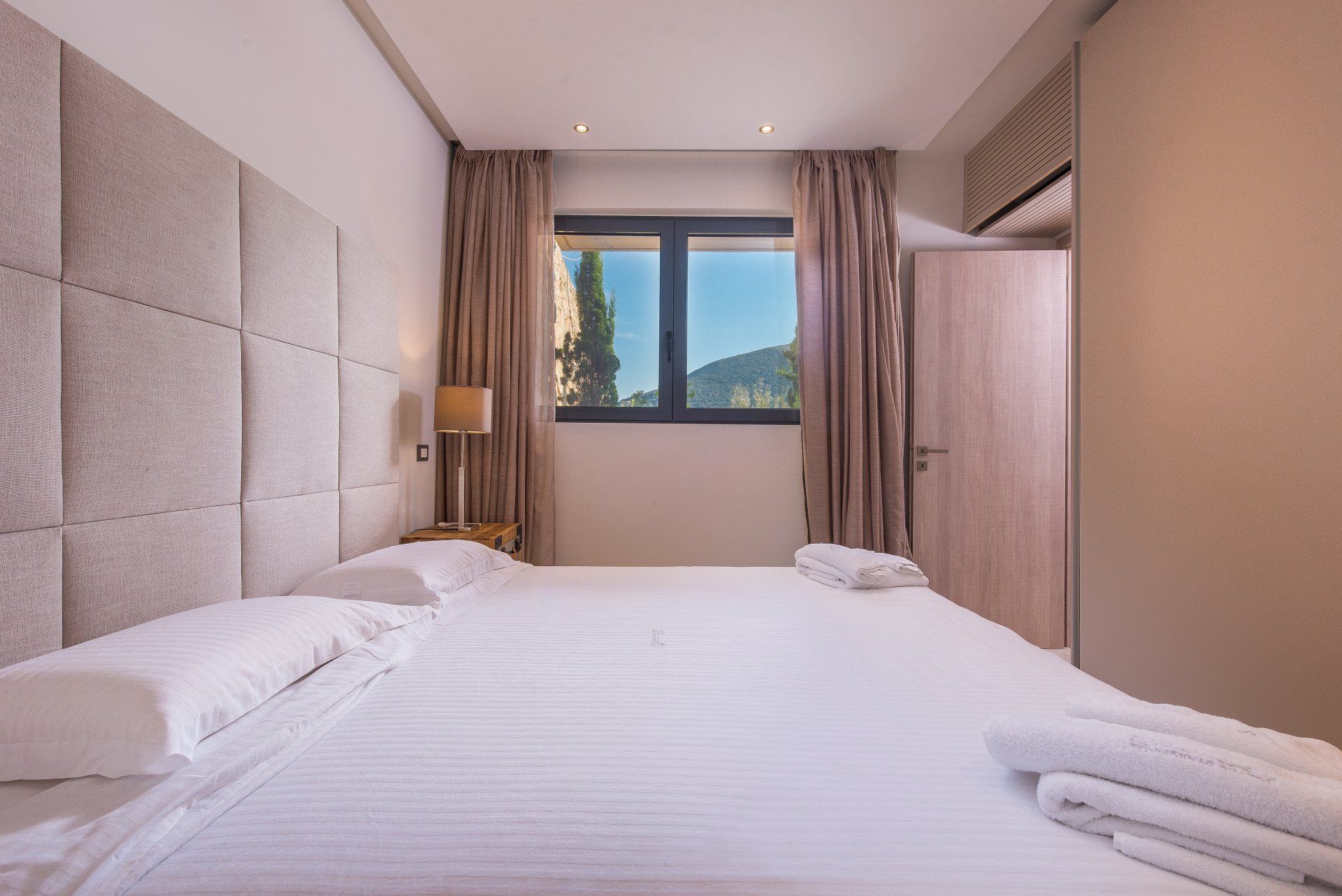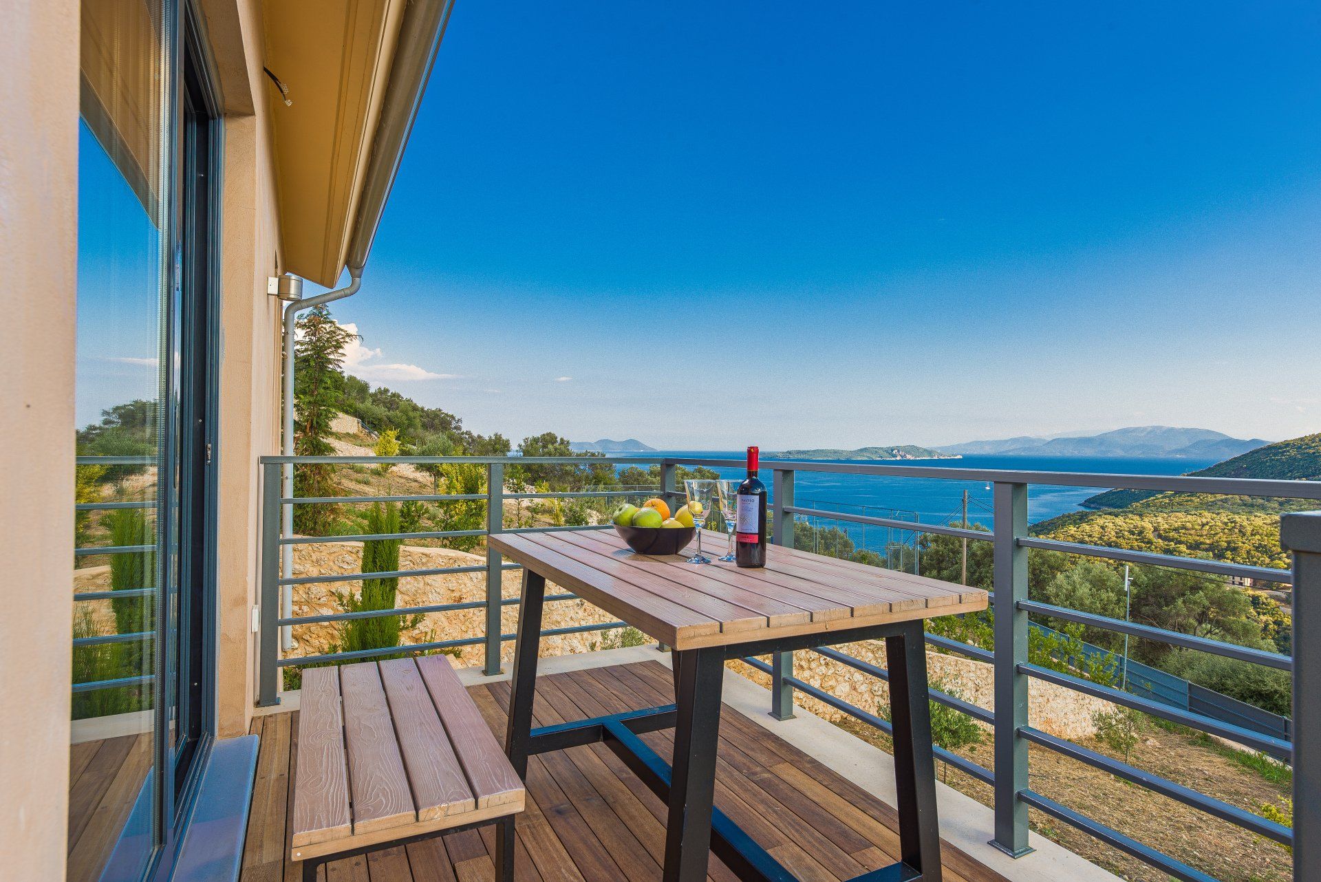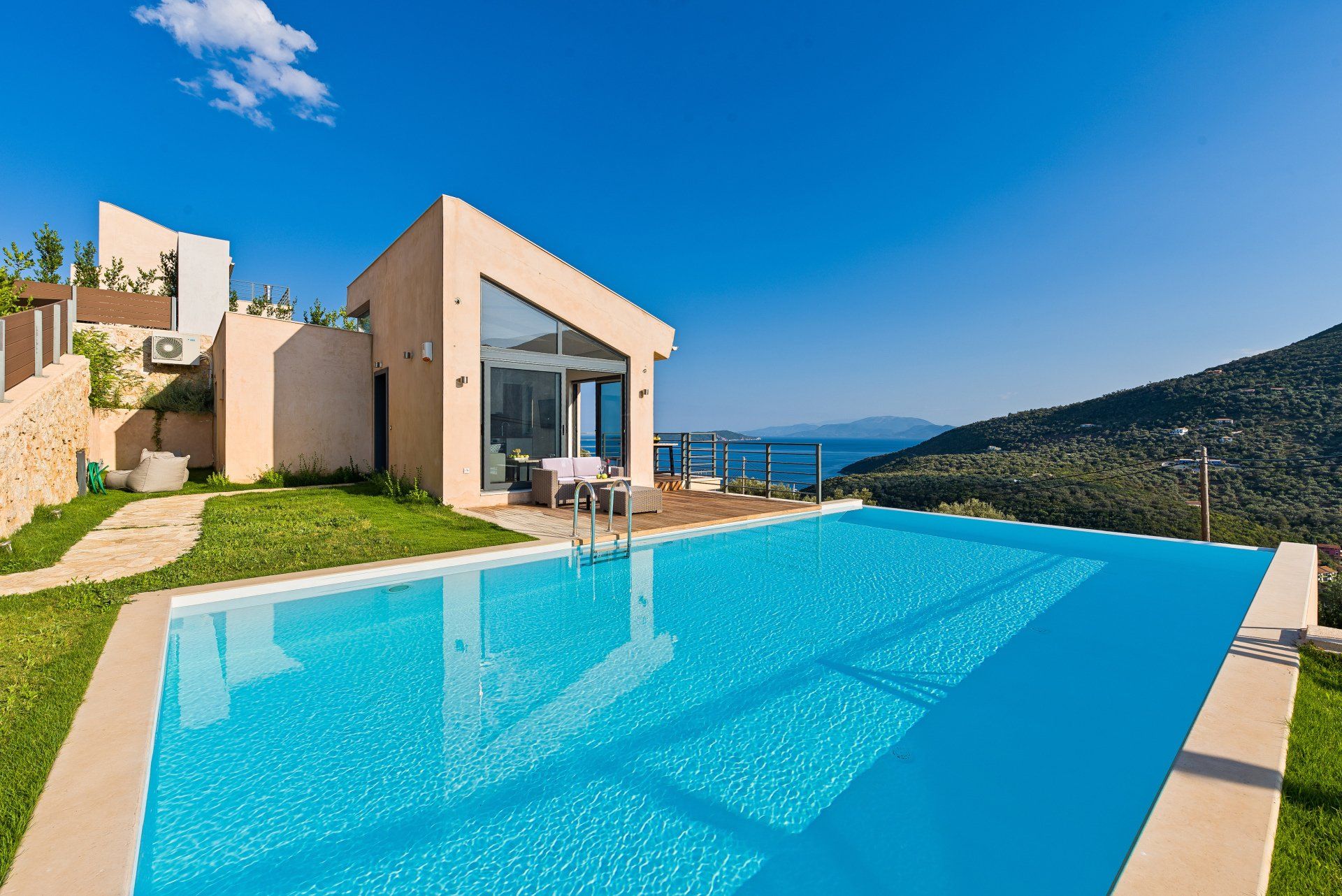 This three bedroom villa (95 sqm), impresses the guest with its minimal chic and its breath-taking view of the Sivota Bay and the Ionian Sea, both from the outside as well as from the inside through the large windows.
