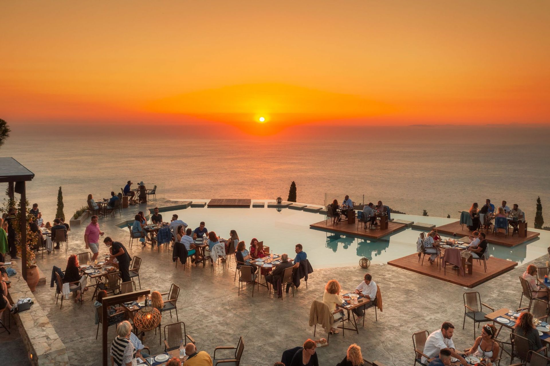 Rachi the restaurant in the village of Exanthia is a must. Advance booking is recommended. Sitting at the lounge area to watch the paragliders take off into the sunset is a true sunset vibe recomendation. Located 50min drive from The Dynasty Villas.